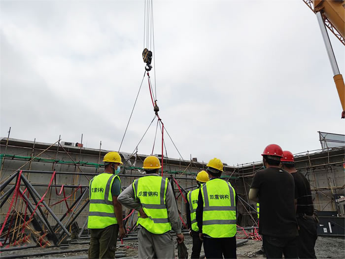 6.为确保.南康加油站球形网架安装顺利,应有详细的南康施工组织设计。网架安装必须保证结构的稳定性和不产生的附加变形。